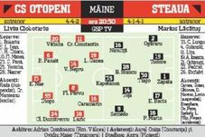 CS Otopeni nu se va putea baza în meciul de mâine pe serviciile fundașului împrumutat de la Steaua, Ionuț Rada, oricum suspendat în urma cumului de cartonașe galbene, dar care avea totodată și o clauză în contract potrivit căreia nu poate juca în meciul direct. De asemenea, fostul atacant al Stelei, Victoraș Iacob, este accidentat.