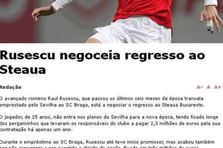 Rusescu, 25 de ani, nu are nicio șansă de a rămâne la Sevilla în viitorul sezon, urmând a fi din nou împrumutat. În a doua jumătate a sezonului trecut, Rusescu a fost împrumuat la Sporting Braga. Chiar dacă a avut un start bun, evoluțiile sale nu i-au convins pe oficialii clubului să plătească 2,3 milioane de euro pentru un transfer definitiv.