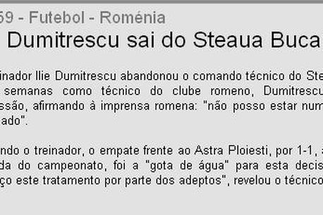 „Ilie Dumitrescu a abandonat banca tehnică a Stelei la șase
