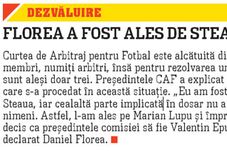 Lupescu, el fiind finul directorului FRF. „Acest lucru este irelevant. Pot spune că sunt mulțumit cu această decizie și nimeni nu mi-a reproșat nimic”, a declarat Florea. Întrebat de ce președintele FRF, Mircea Sandu, a acordat o atenție deosebită acestui caz, Florea a răspuns că presa a avut un rol important în această situație. „Presiunea mediatică a fost deosebită de data aceasta, iar Sandu trebuie să se asigure că regulamentele sunt aplicate corect. Teoretic, decizia este irevocabilă”, a încheiat președintele CAF. Ceea ce știa, dar probabil că nu a vrut să spună, este faptul că în Comitetul Executiv de azi, numele său nu va mai figura printre cele ale membrilor comisiilor pentru sezonul viitor.