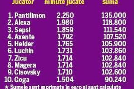 60 de euro pentru fiecare minut bifat pe teren. Cei mai mulți „bani