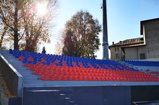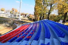 Vineri au ajuns la Târgoviște primele 3.000 de scaune, roșii și albastre, câteva sute fiind deja montate în zona peluzei, cea care nu a beneficiat de scaune sau gradene vreodată în întreaga istorie de șapte decenii a stadionului.