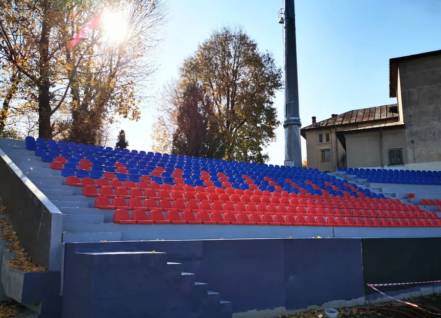 Nocturna și gazonul au fost finalizate din vară, iar vestiarele – în condiții de omologare provizorie – vor fi amplasate în containere, potrivit autorităților locale, cele care susțin investiția de aproximativ 10 milioane de euro din fonduri proprii.