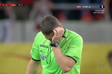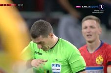 Arbitrul s-a resimțit, a pus mâna la față, dar și-a revenit și a mers în direcția jucătorilor ambelor echipe, care se aflau în careul lui Piscitelli.