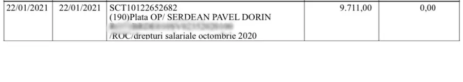 Pe lângă acest transfer, fostul președinte din „Ștefan cel Mare” a mai făcut două plăți în valoare de 17.380 de lei și 14.500 de lei către reprezentantul său legal.