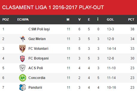 Până la urmă, Pandurii a rezistat puținelor atacuri ale lui Poli, a plecat cu trei puncte de pe Dan Păltinișanu, iar acum echipa lui Stoican e mare favorită la salvarea de la retrogradare. Cu două etape înainte de final, Pandurii are 26 de puncte, în timp ce ACS Poli și Concordia Chiajna au rămas cu 23, ocupând locul de baraj și primul loc retrogradabil.