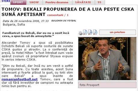 Totuși, în cazul în care patronul Stelei chiar s-ar hotărî să investească la ȚSKA, s-ar putea ciocni la aceeași opoziție din partea ultrașilor bulgari – fanii din Sofia sunt înfrățiți cu cei din Ghencea.