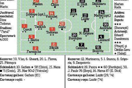 Față de formula cu care a spulberat Ceahlăul etapa trecută, Marian Rada a operat câteva modificări în echipa de start.