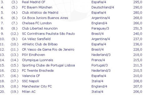 Clasamentul la vârf este neschimbat, cu Barcelona, Universidad de Chile și Real Madrid pe primele trei locuri.