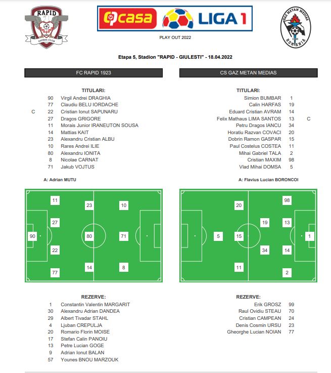 Rapid a făcut spectacol pe teren propriu cu Gaz Metan Mediaș, scor 8-0, în etapa a 5-a din play-out-ul Ligii 1. În urma rezultatului înregistrat în această seară, giuleștenii rămân pe primul loc în play-out și au șanse să prindă barajul pentru cupele europene.