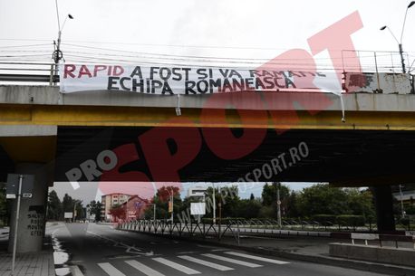 Grupul de fani a afișat un banner elocvent: „Rapid a fost și va rămâne echipă românească”.
