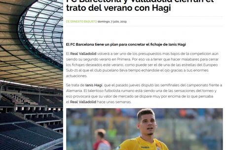 Real Valladolid s-a salvat de la retrogradare în ultimul moment, la finalul sezonului recent încheiat de La Liga. Formula agreată ar fi ca Barcelona să achite suma de transfer și să-l trimită pe Ianis împrumut în suburbiile Madridului.