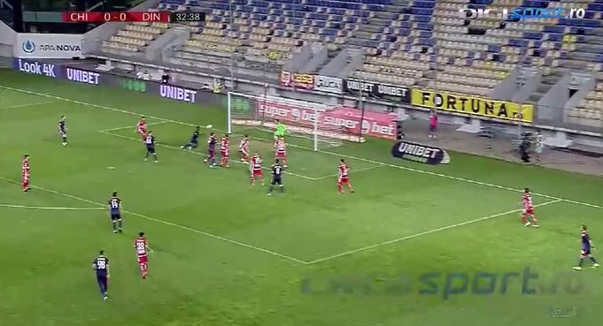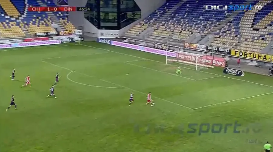 După o centrare perfectă a lui Cristian Neguț (24 de ani), Blaise Yameogo a trimis cu capul din fața porții, însă mingea l-a lovit pe portarul Cătălin Straton (30 de ani) și a ajuns la apărarea dinamovistă care a îndepărat pericolul.