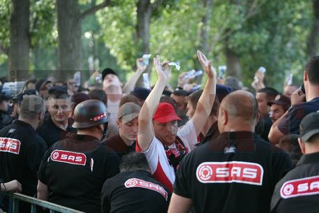 Intervenția în forță a stewarzilor de la stadion i-a calmat repede pe ultrașii înfierbântați, care erau în evidentă superioritate numerică.