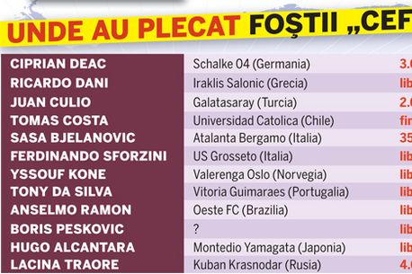 De la finalul lunii august și până acum, adică în ceva mai bine de șase luni, CFR s-a despărțit de 12 jucători, plecați aproape în toate colțurile lumii, din America de Sud până în Orientul Extrem. „Problema la CFR e că toți vrem să plecăm de aici", spunea stoperul brazilian Hugo Alcantara pe la mijlocul sezonului de toamnă, când lucrurile nu mergeau deloc bine în tabăra campioanei. „Zece aș da afară acum, dacă aș putea", susținea, cam în aceeași perioadă, și Arpad Paszkany, omul cu banii din Gruia.