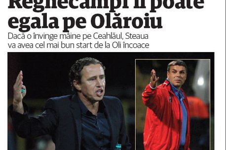 Dacă Steaua se va impune, palmaresul lui Reghecampf după primele cinci etape arată 4 succese, un rezultat de egalitate și nicio înfrângere, același pe care l-a avut și Olăroiu în sezonul 2006-2007. Atunci, Steaua se afla pe locul trei, însă acum are șansa de urca pe prima poziție.