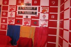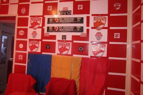 Înăuntru, tot ce vrei și ce nu vrei este colorat în alb-roșu. De la pereți, uși și dulapuri, până la căni, pahare, ceasuri. Papucii de casă sunt tot în culorile lui Dinamo, vesela la fel. Baia, bucătăria, holul, camerele, totul spune ceva despre clubul Dinamo. Afară, aceleași culori. La intrare te întâmpină o declarație de dragoste pentru clubul din Ștefan cel Mare: „Te iubesc, Dinamo!”.