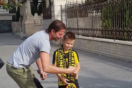 Liniștea e „spartă” de un puști de câțiva ani. Se îndreaptă spre Roman cu o cariocă, cu care probabil își exersează aptitudinile de artist din timpul liber, și i-o întinde. „Weidenfeller, please!”, arătând spre tricoul cu numărul 11 (purtat de preferatul său, Reus) îmbrăcat în dimineața pe care și-o va aminti cu plăcere la adolescență. Portarul îl privește, îi zămbește, iar grimasa germană ce-i brăzda fața se transformă într-un zâmbet plăcut . Acesta este semnalul care i-a împins și pe ceilalți să nu mai facă ochii mari și să se minuneze de prezența impunătoare a fostului portar. Se apropie cu pași mărunți de el, rugându-l să facă o poză sau să le ofere un autograf.