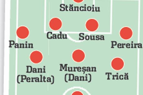 La 9 puncte în spatele liderului Dinamo după doar 10 etape scurse din Liga I, CFR Cluj nu-și permite luxul nici măcar al unei remize în derby-ul de mâine. Asta dacă vrea să mai păstreze și șanse practice în bătălia pentru titlu. Tocmai de aceea, tehnicianul italian al campioanei, Maurizio Trombetta, ia în calcul folosirea unui modul mai ofensiv contra „câinilor“ decât cel folosit în ultimele etape. Concret, Trombetta se gândește să revină la acel 4-3-3 utilizat la Bistrița, în primul său meci ca principal la CFR, situație în care va fi nevoit fie să-l sacrifice pe unul dintre cei doi închizători, Gabi Mureșan sau Dani, fie să-l redistribuie pe unul dintre ei pe alt post, cel mai probabil lusitanul urmând să joace mai în lateral.