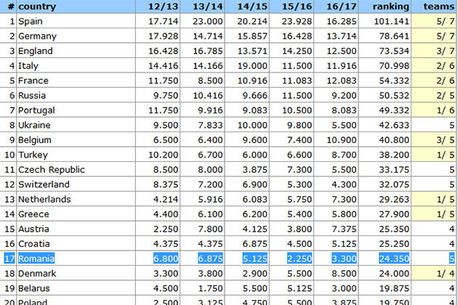 Pentru ca România să trimită din nou două echipe în tururile preliminare ale Ligii Campionilor este necesar să ajungem pe locul 15 în sezonul următor, ceea ce înseamnă că trebuie să recuperăm mai mult de un punct în fața Austriei și Croației.