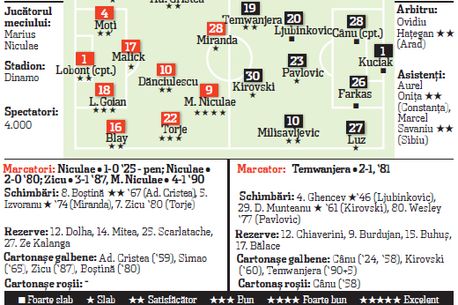 Ocaziile se irosesc însă una câte una, pentru că, dintre toate acțiunile în care aveau și superioritate, doar Niculae a avut o finalizare de trecut clasa, însă efectul ei a fost resimțit doar de transversala care s-a zguduit câteva secunde bune după torpila acestuia. „Săgeată” nu s-a lăsat până n-a mai văzut o dată mingea în plasa vasluiană, și a primit o mână de ajutor din partea lui Farkaș. Liniștea a durat puțin, iar vorba aceea, cum că 2-0 e un scor periculos, a căpătat iar sens la golul lui Temwanjera, de peste două minute. Doar un foc de paie, pentru că la Dinamo a intrat și Zicu, iar „machidonul” a înșirat vasluienii în drumul spre al treilea gol dinamovist. Punctul l-a pus tot Niculae, după o pasă impecabilă a lui Dănciulecu.