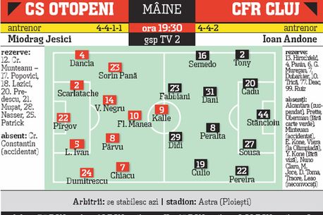 Campionii vor face deplasarea pentru meciul de la Otopeni în această dimineață, la ora 7:20, cu cursa Tarom de București. De la aeroport, oamenii lui Andone vor merge la Săftica, unde și-au stabilit cartierul general pentru acest meci. Andone a programat și un antrenament în această după-amiază.