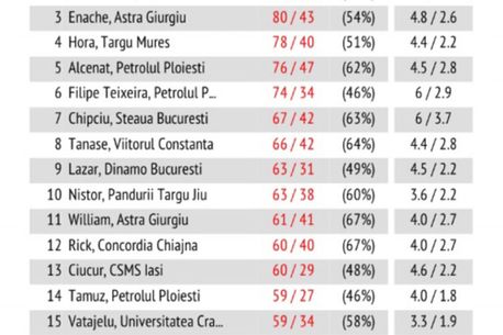 Surprinză, însă! Potrivit datelor statistice, „Magicianul” Stelei se clasează doar pe locul doi în acest top. Prima poziție este ocupată de Alexandru Mitriță (20 de ani), fotbalistul lui Gică Hagi la Viitorul. Conform datelor oferite de firma de statistică InStat, Mitriță a reușit 51 de driblinguri din cele 94 încercate, ceea ce înseamnă un procentaj de 54%.