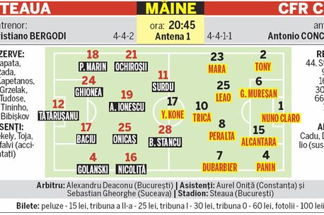 Transferul lui Goe în Italia a adus în visteria clubului aproximativ două milioane, dar l-a pus în dilemă pe Cristiano Bergodi, care nu este decis pe cine să folosească în partida de duminică cu ardelenii.