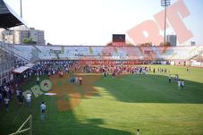 Aproape 1.500 de suporteri au fost ieri prezenți în tribunele stadionului „Valentin Stănescu”, pentru a-și asigura favoriții de sprijinul lor. La ieșirea fotbaliștilor pe teren, aceștia au aprins torțe și au început să cânte, moment în care mulți dintre jucători au început să plângă. La un moment dat, aceștia au urcat în galerie, sărbătoarea amară continuând.