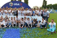 La festivitatea de premiere a campioanei Ligii a 2-a, ediția 2016/2017, Daniel Oprița, modest, s-a așezat în marginea grupului de jucători. În schimb, în centru, atât al grupului cât și al atenției, au luat loc Ilie Ciuclea, finanțatorul clubului și omul care acum îl vrea demis pe antrenor, cât și președintele Gheorghe Chivorchian. Foto: frf.ro