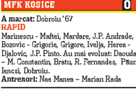 Giuleștenii au pus punct stagiului de pregătire din Antalya, printr-un amical cu MFK Kosice, câștigat cu 1-0. Rapidiștii au marcat prin Dobroiu, într-un meci în care vântul le-a pus probleme mai mari decât adversarul. La sfârșitul partidei, Nae Manea a trimis „săgeți" către patronii echipei, nemulțumit fiind de faptul că jucătorii vor reveni astăzi în țară tot cu buzunarele goale. „Am obținut o victorie importantă pentru moral. Sperăm să avem un retur bun, iar odată cu prima etapă să fie rezolvate și problemele de la nivelul conducerii. Dacă nici Taher și nici Copos nu mai vor să fie patroni, poate domnul Negoiță va lua Rapidul și va fi cel care va plăti salariile jucătorilor. Băieții s-au comportat exemplar în Antalya, au tras tare, au muncit fără să fie plătiți. Era normal ca jucătorii să aibă salariile la zi! Noi ne-am făcut datoria, acum să vină și banii", a răbufnit Nae Manea.