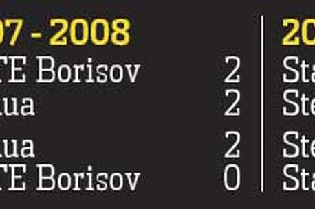 Acum un an, cu Gică Hagi pe banca tehnică, Steaua a remizat în deplasarea de la Borisov, scor 2-2, după care bielorușii au fost învinși în România. Coincidența merge mai departe, cu un sezon înainte, când Vali Badea a trimis Steaua în Liga Campionilor după o pauză de 10 ani, beneficiind însă și de rezultatul de 2-2 înregistrat în tur, la Liege. Mai mult, în campania 1996-1997, roș-albaștrii au pătruns în grupele Ligii ca urmare a unui 2-2 la Brugge, urmat de un sec 3-0 la București.