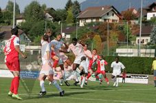 Min. 35 Andrei Cristea reia frumos din voleu de la marginea careului mare, portarul celor de la Croix de Savoie respinge cu greu
