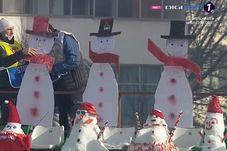 Info: Suporterii lui Sepsi Sfântu Gheorghe au făcut oameni de zăpadă în tribunele stadionului și i-au îmbrăcat în culorile clubului.