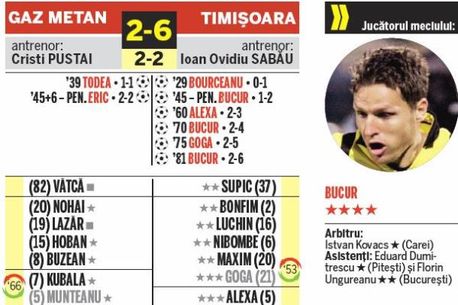 (60), Bucur (70, 81) și Goga (’75) distrându-se fiecare cu apărarea