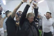 A desfăcut șampania, a băut din ea, s-a stropit pe față și pe haine și a încheiat cu un mic număr de striptease în fața propriilor jucători. După ce și-a dat jos cravata, a urmat cămașa și oficialul de la Gaz Metan a rămas la bustul gol! În tot acest timp a plâns de fericire, fiind cea mai importantă performanță de când e la conducerea medieșenilor.