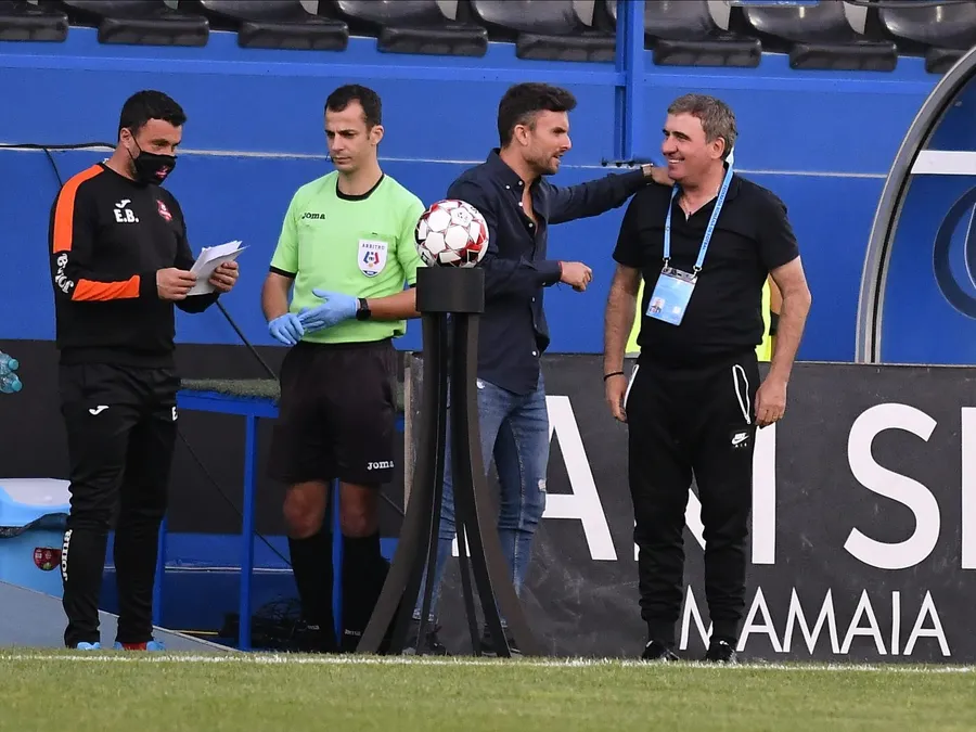 Antrenorul spaniol a zâmbit o singură dată la Ovidiu. La începutul partidei când a făcut cunoștință cu Gică Hagi.