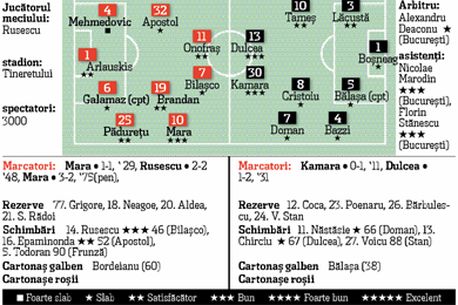 Ținte? Băieții în negru. Necunoscuta? Cine cedează primul. Risipită însă repede de antrenorul gazdelor. Timp de așteptare cam șapte minute. Bilașco se prăbușește în careu, iar „Bursucul” explodează. Își aruncă pumnul în aer: „Băăă! Mă fură! Din nou”.