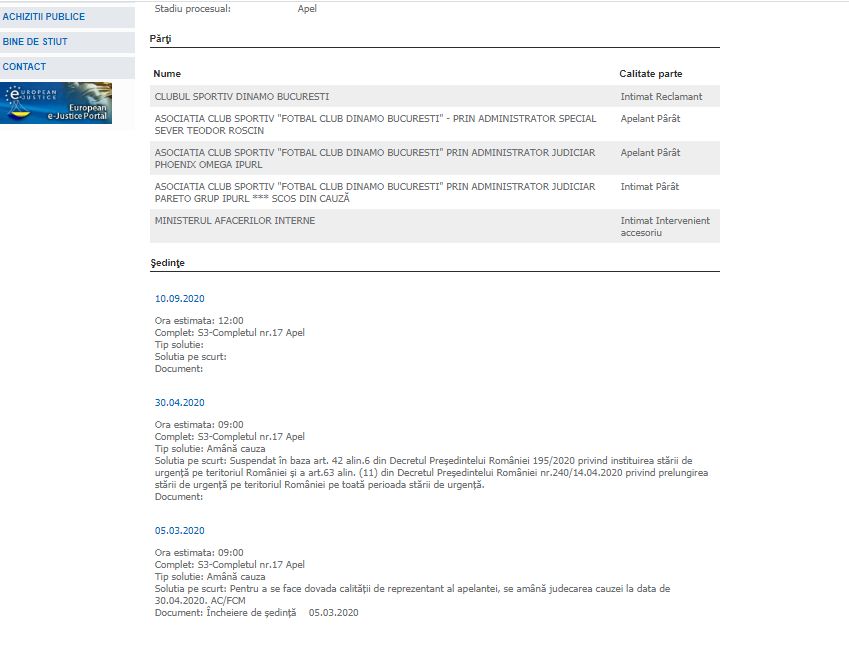 După victoria celor de la CS Dinamo, care au solicitat încă din 2017 încetarea contractului de asociere și au primit câștig de cauză la Tribunal, în 2019, acum s-a ajuns la „etapa” Curtea de Apel, acolo unde ACS FC Dinamo a atacat decizia, la începutul acestui an.