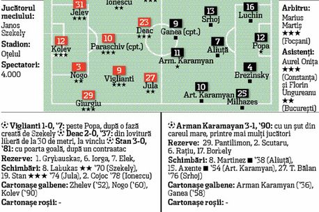 Iar ca și scorul să reflecteze realitatea de pe teren, Daniel Stan, abia intrat în joc, face 3-0 după un contraatac ce confirmă practic neprezentarea Timișoarei la meci. Golul reușit pe final de Arman Karamyan doar strică statistica.
