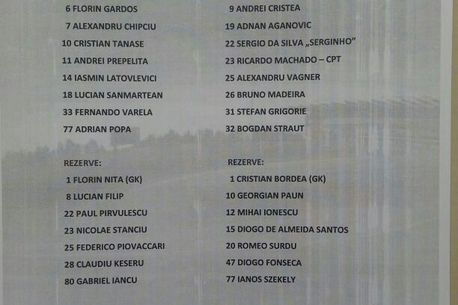 Rezerve: Bordea, Păun, Ionescu, Almeida, Surdu, Fonseca, Szekely