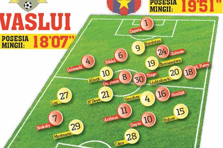 1 pasă utilă peste apărarea vasluiană a reușit Steaua din 15 încercări!