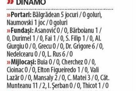Dinamo: Bălgrădean- Rus, Thicot, Grigore, Filip- Șerban, Boubacar- Matei, Elton, Rotariu- Țucudean