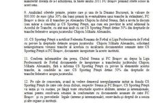 11. Conform informatiilor din presa, Clubul Steaua și FC Brașov au depus la Liga Profesionistă de Fotbal documentele de înregistrare a transferului jucătorului Chipciu Mihaita Alexandru, fără a informa CS Sporting Pitești cu privire la elementele acestui transfer, in conditiile in care CS Sporting Pitești detine 50% din drepturile de transfer/federative asupra jucatorului.