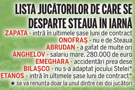 Acasa » Fotbal Intern » Liga 1 » Steaua se desparte de 6 jucători! **VEZI numele de pe LISTĂ‚ și MOTIVELE pentru care pleacă!