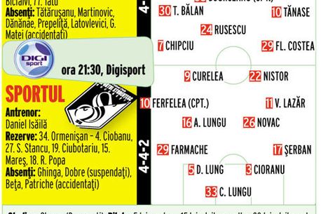 Rezerve: Ciuhulescu, Iliev, Gardoș, Răduț, Lupu, Fl. Costea, Nikolic