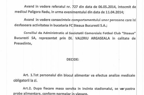 Doctorul a prezentat o serie de măsuri care au fost aprobate de președintele clubului Valeriu Argăseală printr-o adresată emisă în 9 mai 2014.