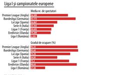 Un capitol la care Liga 1 stă mult mai prost decât cele mai importante competiții europene este gradul de ocupare al stadioanelor. Dacă în Anglia sau Germania fotbalul reprezintă o activitate care atrage mulți oameni, în România arenele sunt mai mult goale decât pline. În sezonul trecut, gradul de ocupare în Liga 1 a fost de 27%, în timp ce Premier League a avut 92,33%, Bundesliga 92,65%, iar La Liga 74,26%. La același capitol putem spune că Steaua, clubul cu cei mai mulți suporteri din România, nu se compară cu alte mari cluburi din Europa. „Roș-albaștrii” au avut o medie de 9.453 de spectatori la meciurile de pe teren propriu în timp ce Manchester United, Borussia Dortmund sau Barcelona au trecut de pragul de 75.000.