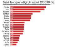La nivelul Ligii 1, Petrolul este echipa care adună cei mai mulți fani raportat la capacitatea stadionului pe care îl are. În sezonul trecut, ploieștenii au avut un grad de ocupare a stadionului de 56,34%, iar locul doi este ocupat de Astra Giurgiu, care a avut un grad de ocupare a stadionului la meciurile de pe teren propriu de 54,17%. Podiumul este completat de Botoșani. Moldovenii au fost susținuți la partidele de „acasă” de 48,47% din totalul numărului de posibili spectatori. Surprinzătoare este absența Stelei din primele trei echipei. Formația din Ghencea a avut un grad de ocupare al stadionului de 31% în sezonul trecut, sub Dinamo, care a înregistrat un procent de 33,47%.