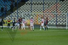 Gălățenii au început tare, împingând jocul în jumătatea oaspeților. Ploieștenii au stat la cutie, așteptând calmi să declanșeze contre care să scurtcircuiteze defensiva gazdelor. Dominarea sterilă a campioanei le-a permis fundașilor Astrei să reziste fără mari probleme, în primele 40 de minute fiind demne de remarcat doar intrările lui Găman la Punosevac și a lui Râpă la Morais. În minutul 40, Neagu a dat o pasă de geniu pentru Punosevac, care, beneficiind de un ricoșeu norocos, a deschis scorul. Repriza nu s-a încheiat cu avantajul Oțelului pentru că Fatai a profitat de indecizia apărătorilor gazdă și a împins balonul în poartă de lângă bară.